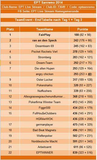 Im Rahmen der EPT San Remo 2014 kam es zum ersten Team-Cup der EPT Home Game Geschichte.