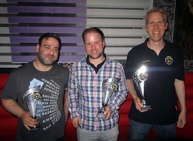 Nach einem zähen Ringen musste Carsten als 4. das Turnier beenden und verpasste somit das Podium um Haaresbreite. Kurz darauf gab es die wohl turnierentscheidende Hand des Abends. Dirk und Gallo brachten all ihre Chips Preflop in die Mitte und es kam zum Showdown mit AJ bei Dirk und QQ bei Gallo. Flop und River brachten je ein A zum Vorschein und so musste Gallo den bitteren Weg an die Rail antreten. Die Triple Crown muss nun zumindest ein weiteres Jahr warten, aber Platz 3 sollte in jedem Fall ein guter Trost sein. Im Heads Up standen sich somit John und Dirk gegenüber. Zum Showdown kam es in einer Situation am Turn, als John mit einem Open Ender pushte und Dirk mit Toppair Topkicker einen leichten Call fand. Der River brachte keine Verbesserung für John und somit konnte Dirk seinen zweiten Triumph bei den Vereinsmeisterschaften festmachen.