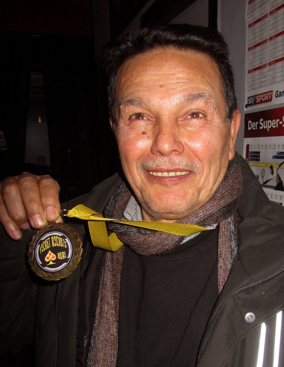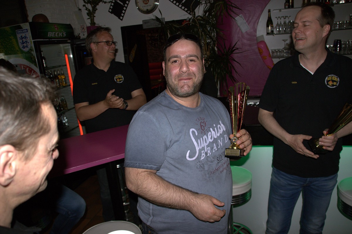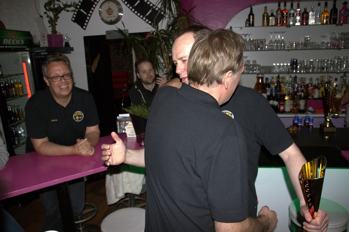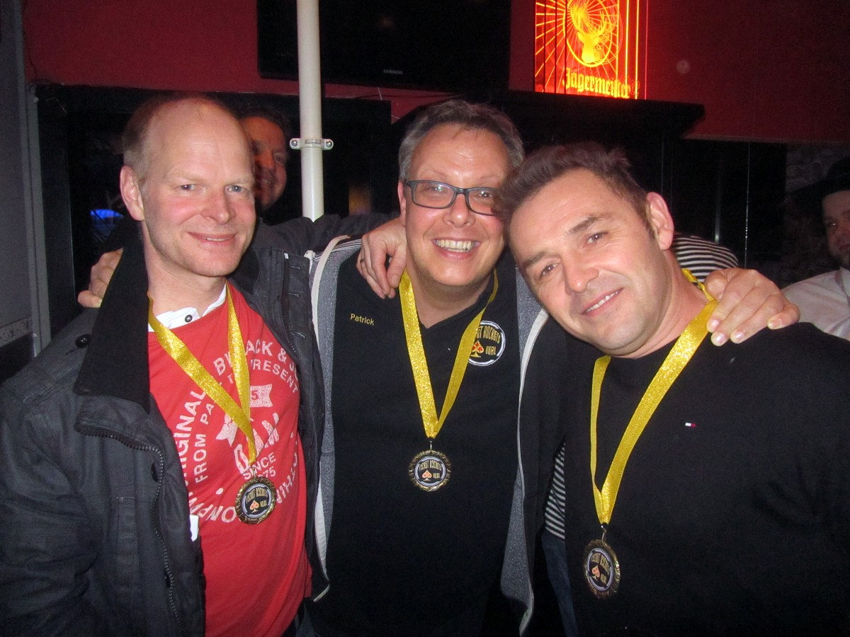 | 1. Pocket Rockets Darts Turnier Sieger wird Gastspieler Michael vor Gastgeberin Ada und Pocket Rocket Burkhard